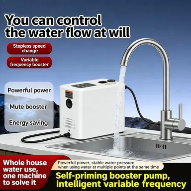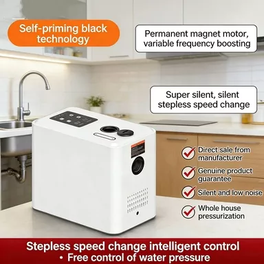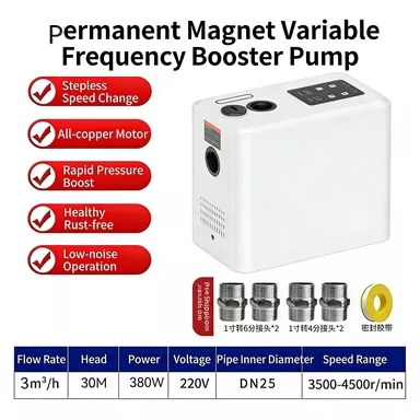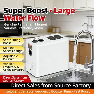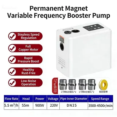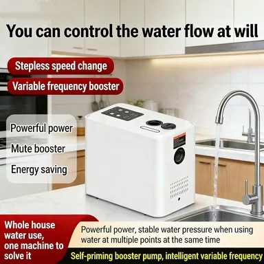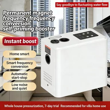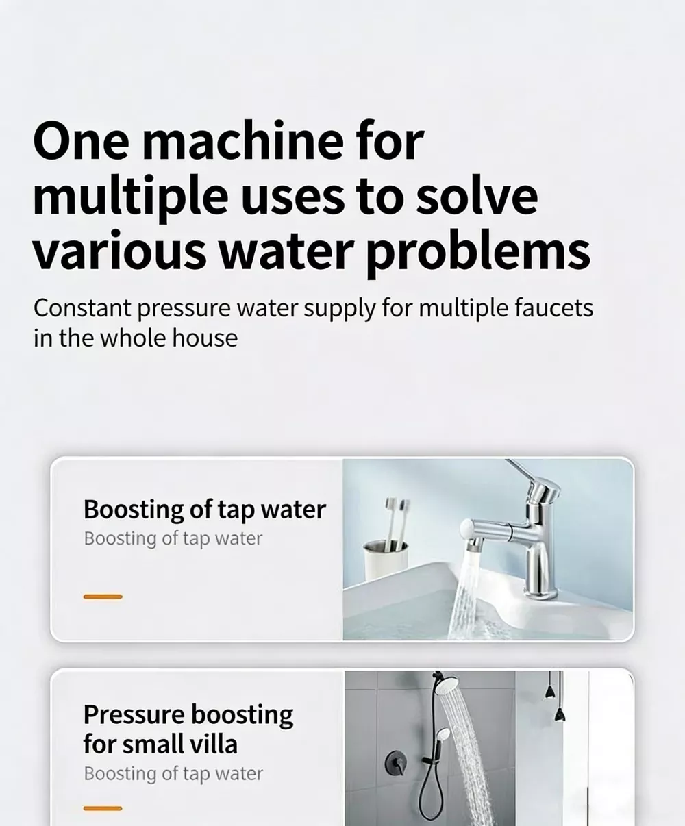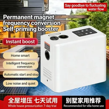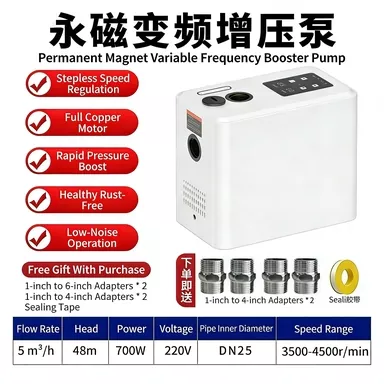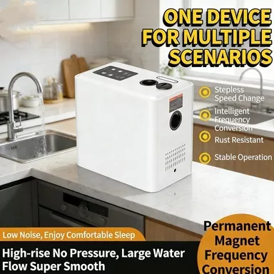 Die Permanentmagnet-Druckerhöhungspumpe mit variabler Frequenz kann individuell angefertigt werden und eignet sich perfekt für niedrigen Wasserdruck zu Hause. Starke Selbstansaugung bis zu 8 Meter, schnelle Druckerhöhung, gleichmäßiger Wasserfluss. Leise, energiesparend, einfache Installation. Ideal für Haushaltshähne, Duschen und Warmwasserbereiter.