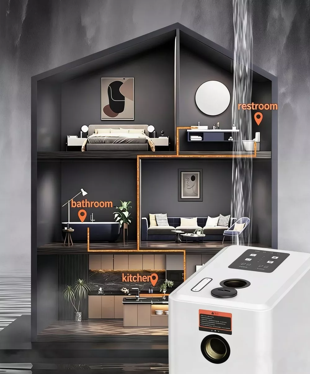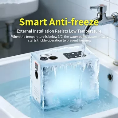 AI Intelligent Start/Stop: Ausgestattet mit hochpräziser Wasserdurchfluss-Sensortechnologie startet es automatisch, wenn ein Wasserfluss erkannt wird, und schaltet sich sofort ab, wenn die Wasserversorgung stoppt. Während des gesamten Prozesses ist kein manueller Betrieb oder wiederholte Anpassung erforderlich.