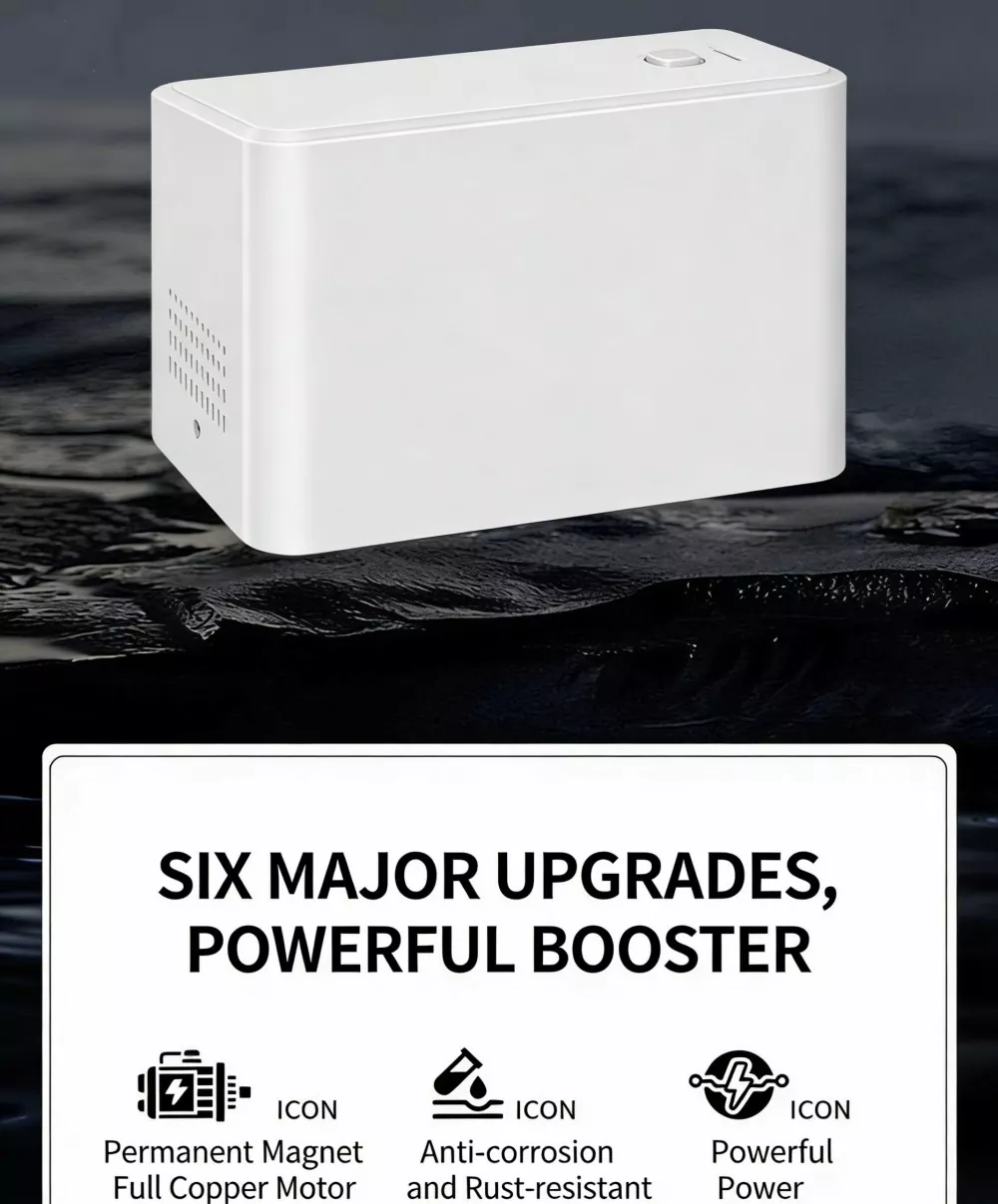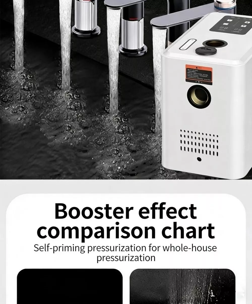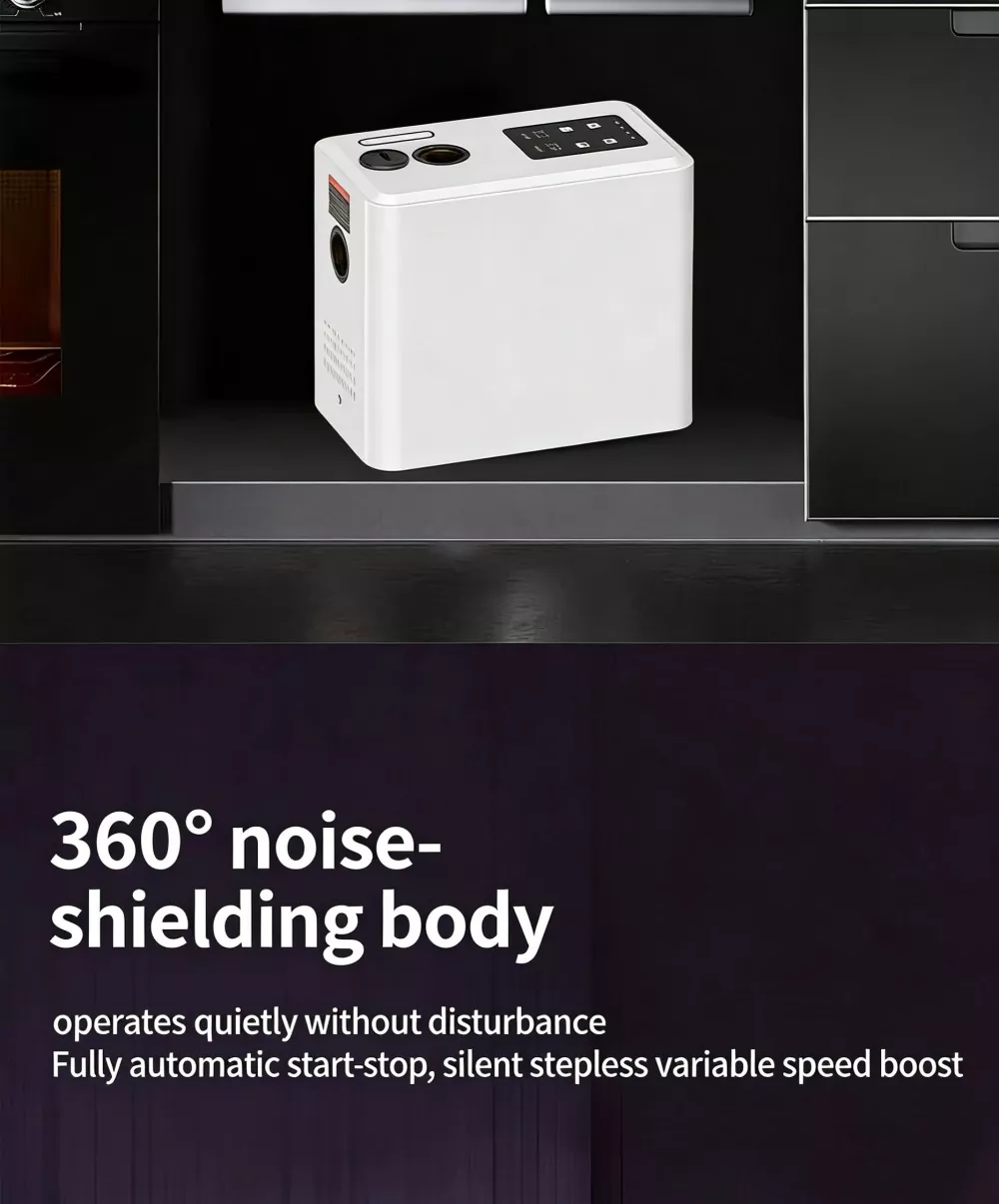 Hochgeschwindigkeitsmotor: Der eingebaute Hochgeschwindigkeitsmotor mit 6500 U/min sorgt für eine starke Leistung, liefert eine starke und stabile Wasserleistung bei großem Durchfluss und löst gründlich das Problem eines unzureichenden Wasserdrucks im Haushalt.
