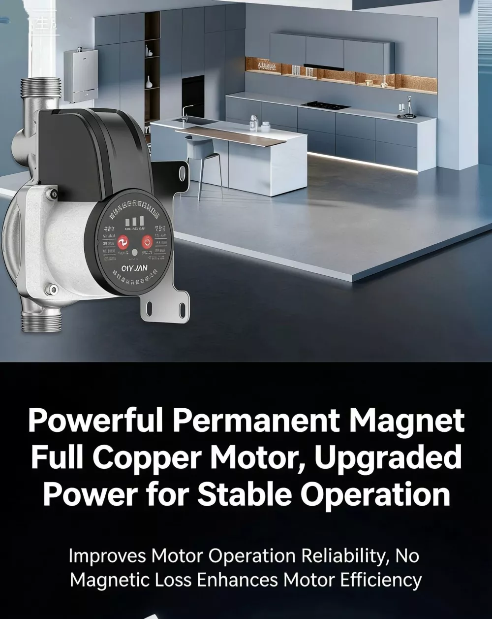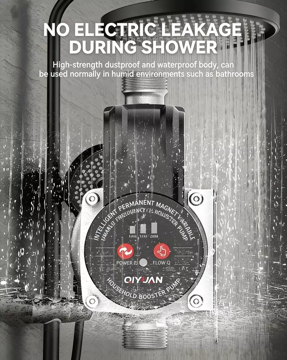 Der eingebaute Wasserdurchflusssensor ermöglicht einen automatischen Start bei Erkennung des Wasserverbrauchs und eine verzögerte Abschaltung nach Wasserstopp, wodurch häufiges Wechseln vermieden wird. Außerdem ist sie mit einem Trockenlaufschutz ausgestattet: Bei Wassermangel in den Rohrleitungen schaltet sich die Pumpe automatisch ab, um den Motor vor Schäden zu schützen.