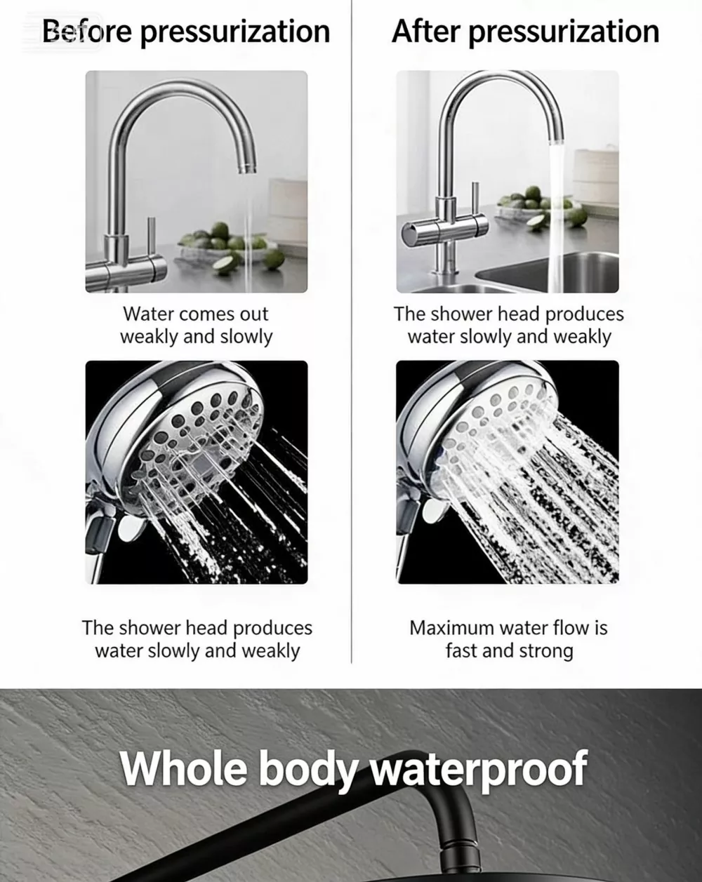 Druckerhöhung im Duschkopf: Verbessern Sie das Duscherlebnis, machen Sie Schluss mit schwachem Wasserfluss und plötzlichen Temperaturänderungen bei Kalt- und Warmwasser.